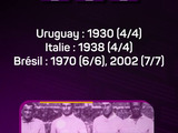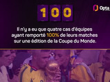 Selon les statistiques d'Opta, seules quatre équipes ont remporté 100% de leurs matches lors d'une édition de la Coupe du Monde : l'Uruguay (4/4 en 1930), l'Italie (4/4 en 1938) et le Brésil (6/6 en 1970 ; 7/7 en 2002).