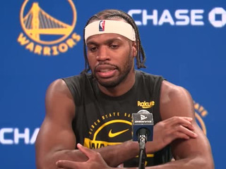 Buddy Hield des Golden State Warriors, s'est exprimé après la victoire 134-117 de son équipe contre le Utah Jazz, mardi.