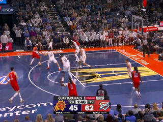 Lors du succès face aux Phoenix Suns cette nuit (138-89) en quart de finale de la NBA Cup, le Thunder a marqué quatre paniers à trois points consécutifs à la fin du deuxième quart-temps, grâce à Shai Gilgeous-Alexander, Luguentz Dort et Jalen Williams. Un enchaînement de paniers qui a fait la différence.