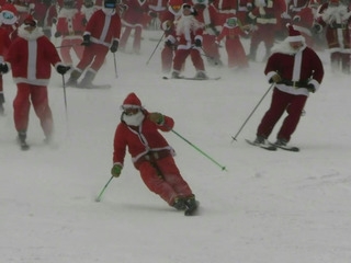 Des centaines de pères Noël ont dévalé ce week-end les pistes de ski de South Ridge, à Newry, dans l’Etat américain du Maine, afin de collecter des fonds pour des organisations caritatives locales.