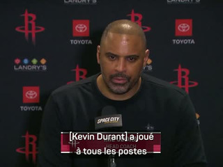 Les Rockets de Houston ont gagné sur le parquet de de Charlotte Hornets 105-101 grâce notamment à 35 points de Kevin Durant. Son coach Ime Udoka reconnaît que son vétéran peut jouer à toutes les positions et qu'il est très à l'aise de partout.