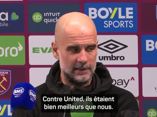 L'entraîneur de Manchester City, Pep Guardiola, s'est exprimé devant les médias après le match nul (1-1) contre West Ham, en Premier League.