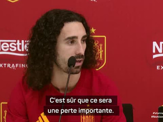 Interrogé sur l'absence de Lamine Yamal, toujours en délicatesse avec sa pubalgie et dont la convocation a finalement été annulée, le défenseur Marc Cucurella a indiqué que la priorité était de donner du temps à la superstar du Barça.