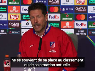 En conférence de presse d'avant-match, Diego Simeone n'a pas souhaité assumer le rôle de favori dans la confrontation qui oppose son équipe, l'Atlético de Madrid à Tottenham pour ce match aller de huitième de finale de Ligue des champions.