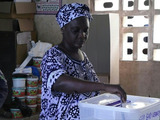 Images de l'ouverture d'un bureau de vote dans la ville ivoirienne d'Abidjan pour l'élection présidentielle. Alassane Ouattara, au pouvoir depuis 2011, est le grand favori de cette élection où il brigue un quatrième mandat contre une opposition fragmentée et dont les principaux leaders sont écartés ...