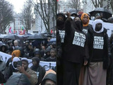 Images de la marche et d'une minute de silence en hommage à El Hacen Diarra, mort dans la nuit du 14 au 15 janvier au commissariat du 20e arrondissement de Paris. "Justice pour El Hacen", scandent les personnes réunies. IMAGES