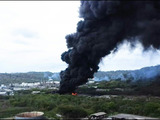 Des panaches de fumée noire s'élève après qu'un incendie s'est déclaré dans un bassin de résidus (zone extérieure) de la raffinerie d'Esmeraldas, en Équateur, près de la frontière avec la Colombie. Selon Petroecuador, l'incendie est maîtrisé et il n'y a ni blessés ni conséquences sur le fonctionneme...