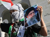 Des manifestants protestent à Los Angeles contre les attaques menées par les États-Unis et Israël contre l’Iran, qui auraient fait plus de 200 morts. Les manifestants brandissent des pancartes indiquant "Ne touchez pas à l’Iran" et "Arrêtez la guerre contre l’Iran" tout en tenant des photos de l’aya...