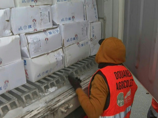 Au Havre, environ 150 agriculteurs avec des tracteurs inspectent tous les camions pour écarter les produits alimentaires non conformes aux normes imposées aux producteurs français et européens, sans bloquer l'entrée du port. IMAGES