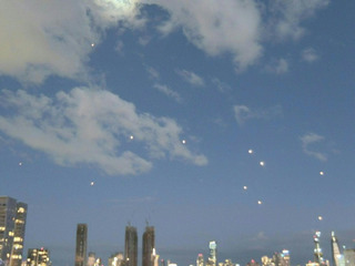 Des systèmes de défense israéliens interceptent des missiles iraniens au-dessus de Tel-Aviv. Les États-Unis et Israël mènent samedi une série de frappes contre l'Iran qui riposte par des salves de missiles dans la région. IMAGES