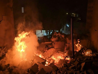 Un incendie fait rage parmi les décombres sur le site d'une frappe israélienne dans la banlieue sud de Beyrouth. L'armée israélienne bombarde lundi le Liban en riposte à des tirs du mouvement chiite Hezbollah en direction d'Israël, au troisième jour de l'offensive américano-israélienne contre l'Iran. IMAGES