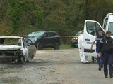 Des membres de la police scientifiques travaillent à proximité du véhicule incendié utilisé par un conducteur qui a percuté volontairement des personnes dans plusieurs localités de l'île d'Oléron.