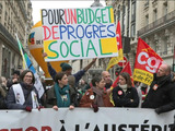 La secrétaire générale de la CGT Sophie Binet appelle les députés "à retirer toutes les horreurs qui polluent ce projet de budget", avant le départ de la manifestation à Paris contre l'austérité budgétaire à l'appel de la CGT, de la FSU et de Solidaires. SONORE