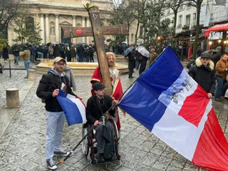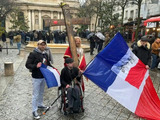 Plusieurs dizaines de personnes se rassemblent devant l'université de la Sorbonne à Paris pour demander "justice pour Quentin", après la mort de cet étudiant de 23 ans proche des identitaires des suites d'une violente agression à Lyon. IMAGES