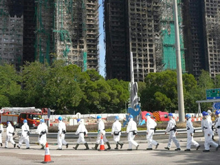 > TV > Alerte Info > Replay > Vues aériennes des immeubles de Wang Fuk Court à Hong Kong après un incendie meurtrier