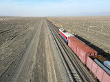 Avec un immense chariot élévateur, Jandos Nourmagambetov empile des conteneurs sur les wagons d'un train prêt à filer à travers la steppe du Kazakhstan sur un nouveau chemin de fer crucial pour le commerce Chine-Europe via l'Asie centrale. "Un train de 39 wagons mesure environ 900 mètres. Nous effe...
