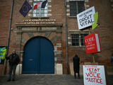 A Carcassonne, une centaine d'agriculteurs ont mené mardi une action symbolique, retirant des denrées importées de deux grandes surfaces, pour contester la forte présence de produits étrangers.