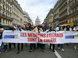 Des médecins libéraux se rassemblaient samedi place du Panthéon à Paris, à l'appel de l'ensemble de leurs syndicats pour dénoncer une "dérive autoritaire" du système de santé, selon l'expression de l'une des organisations participantes, le syndicat Jeunes Médecins.