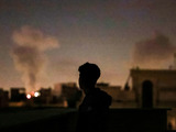 Des pompiers luttent contre un incendie dans un quartier résidentiel proche de Tel-Aviv, causé par des débris après l'interception d'un missile.