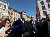 La cheffe des députés du Rassemblement national Marine Le Pen, accueillie par une foule et apostrophée par des manifestants antifascistes, vient soutenir la candidate aux municipales Céline Porquet à Bourg-Saint-Andéol en Ardèche, à neuf jours du premier tour.
