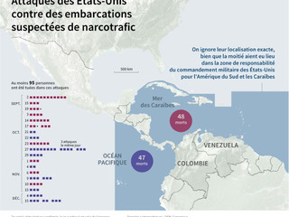 Les États-Unis ont déployé depuis cet été un important dispositif militaire dans les Caraïbes, et bombardé des embarcations en provenance du Venezuela au nom de la lutte contre le narcotrafic, des opérations à la légalité mise en doute par des experts, ONG et responsables des Nations unies.