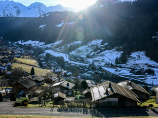 Dans les tribunes, ils agitent leurs drapeaux bleu-blanc-rouge, avec vue sur la piste blanche et les monts de la chaîne des Aravis enneigées, bercés par les rayons du soleil. Tout autour, dans la vallée du Bouchet, l'or blanc se fait rare quand il n'est pas absent. Les chalets en bois sont plantés dans l'herbe nue et les arbres déshabillés par l'hiver.