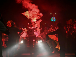 En tenues de sport et affichant des sourires radieux, le chef de l'Etat et le Premier ministre Ousmane Sonko sont sortis du palais de la République dans le centre de la capitale pour aller à la rencontre de la foule fêtant cette victoire dans une clameur assourdissante de feux d'artifice, de klaxons, de vuvuzelas et de percussions.