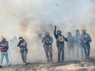 Il s'interpose lorsqu'un agent projette une manifestante au sol sur le trottoir et reçoit un jet de gaz lacrymogène au visage.