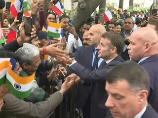 New Delhi : Macron salue la foule et inaugure un centre franco-indien d'IA