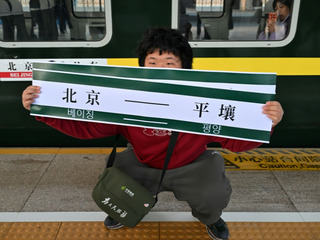 A Pékin, un jeune homme qui se décrit comme passionné des chemins de fers filme, enthousiaste, l’écran des départs indiquant le train K27 à destination de Pyongyang.